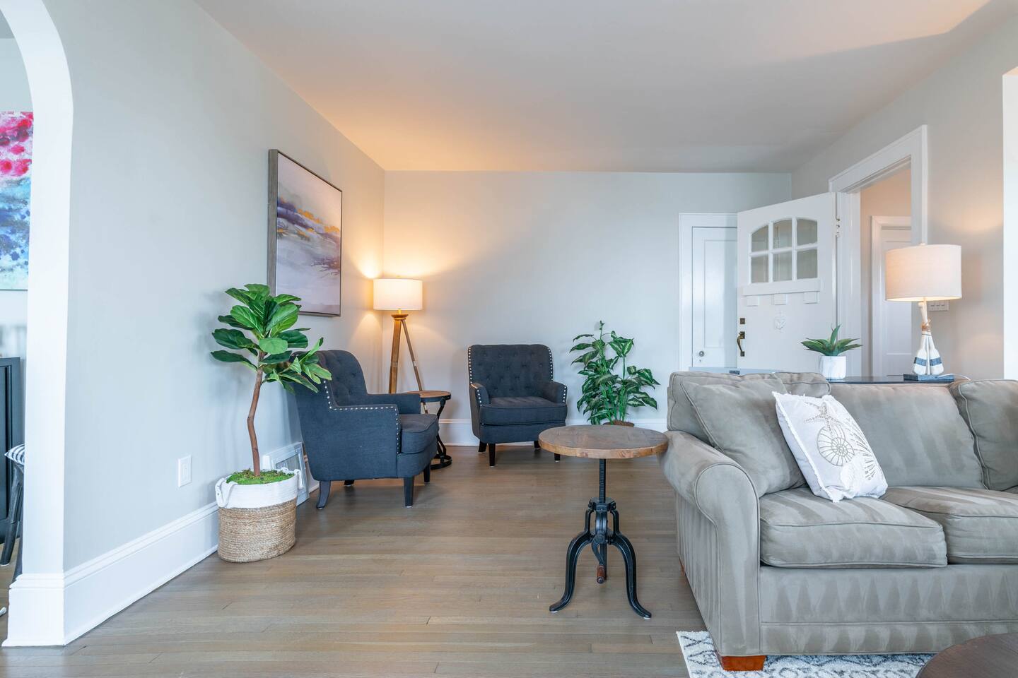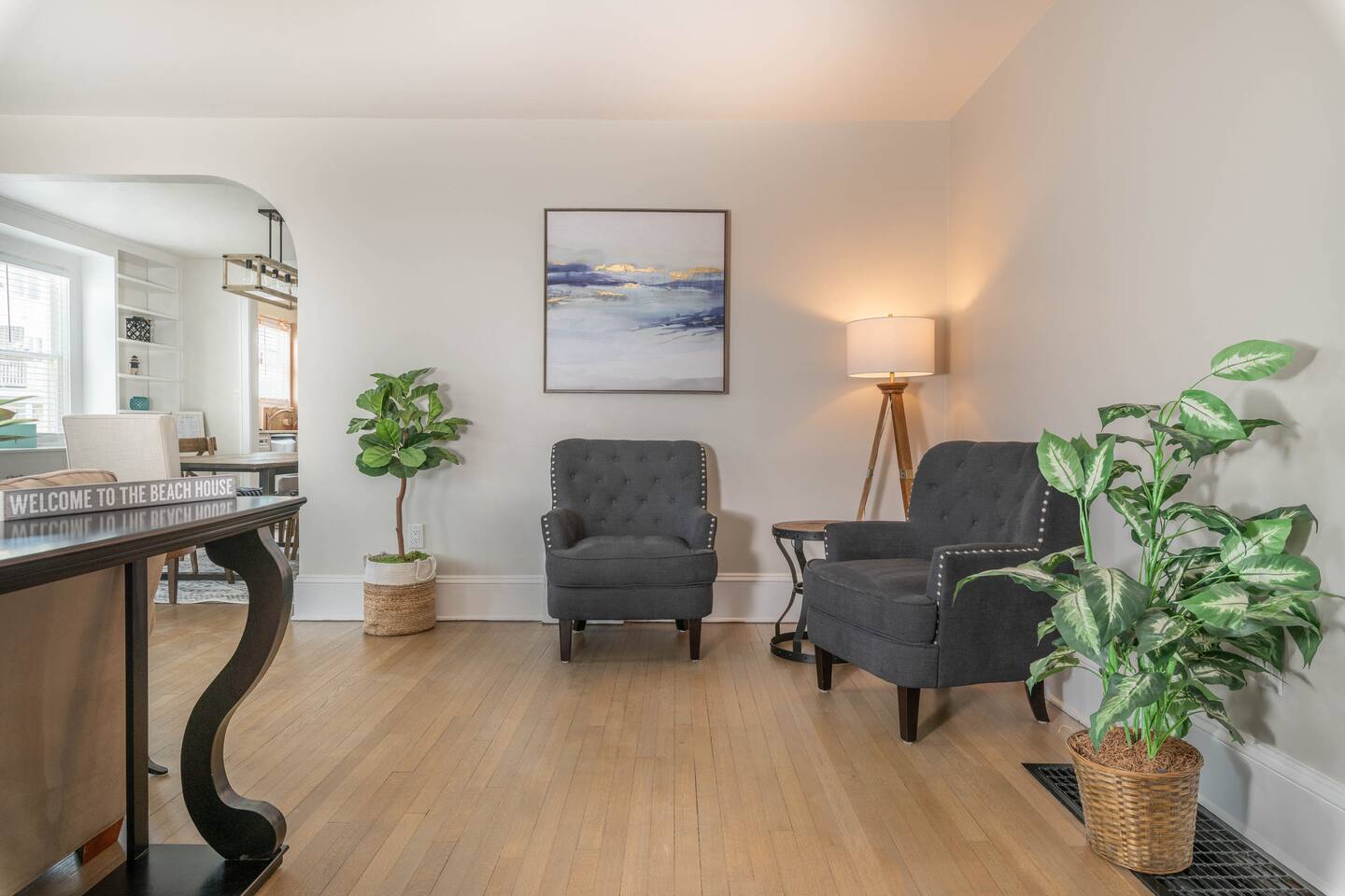 One block to the public beach and river! Enjoy this tastefully furnished beach bungalow with 3bedrooms, 2baths - 1st floor of a 2-family home. Master has a king bed, second and third bedrooms have a queen and twin + trundle bed. Sleep sofa also available in the living room. Bike ride to Sandy Hook, downtown shops and restaurants in Sea Bright and Highlands. Two parking spots, beach chairs, beach bikes and beach towels provided. Washer/dryer in basement. Just pack your bags and enjoy!